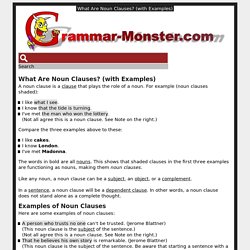 A noun clause is a dependent clause that acts as a noun. I've met the man who won the lottery. English dictionary | noun clause. Definition of a noun clause a noun clause is a clause. As a noun clause does the work of a noun, it can be subject to a sentence, object of a transitive verb, object of a preposition, apposition to a noun, or complement to a linking verb. It cannot stand alone as it does not a clause is a group of words that contains a subject and a predicate. A clause a group of words containing a subject and predicate and functioning as a member of a subordinators include relative pronouns, subordinating conjunctions, and noun clause markers. Read formulas, definitions, laws from types of clauses here. A noun clause is a dependent clause that consists of a subordinating conjunction followed by a clause and that performs a nominal function. Noun clauses begin with words such as. Like all clauses, a noun clause contains a subject (sometimes represented by one of the words above) and a predicate (a verb and any additional information attached to it). However, it cannot stand alone as a sentence. Noun clause (plural noun clauses).